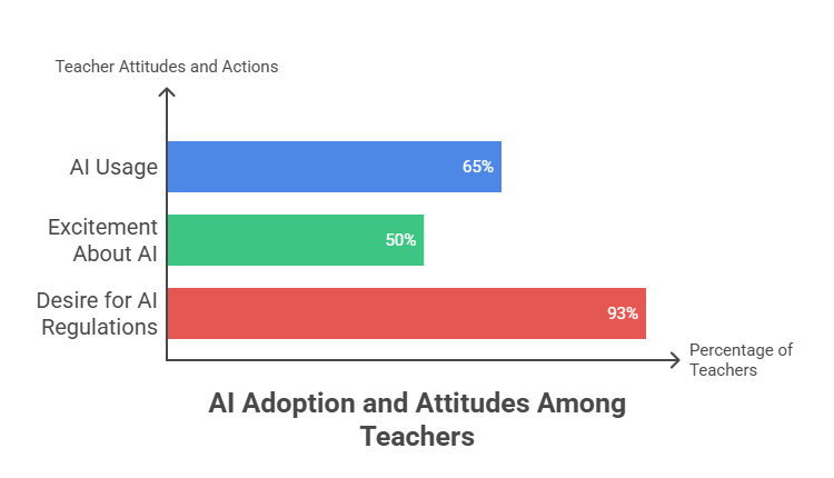 - 93% of teachers want AI regulations established – nearly universal desire for clear guidelines before full adoption