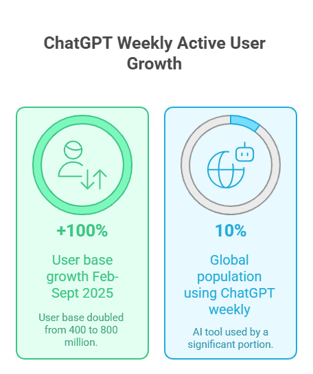 ChatGPT reached 800 million weekly active users by September 2025. This is unprecedented in the tech world.