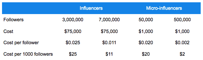 The usual price range of influencers based on their followers would look like this, though influencers may charge per post, number of guaranteed views, percentage of assured sales, etc.: