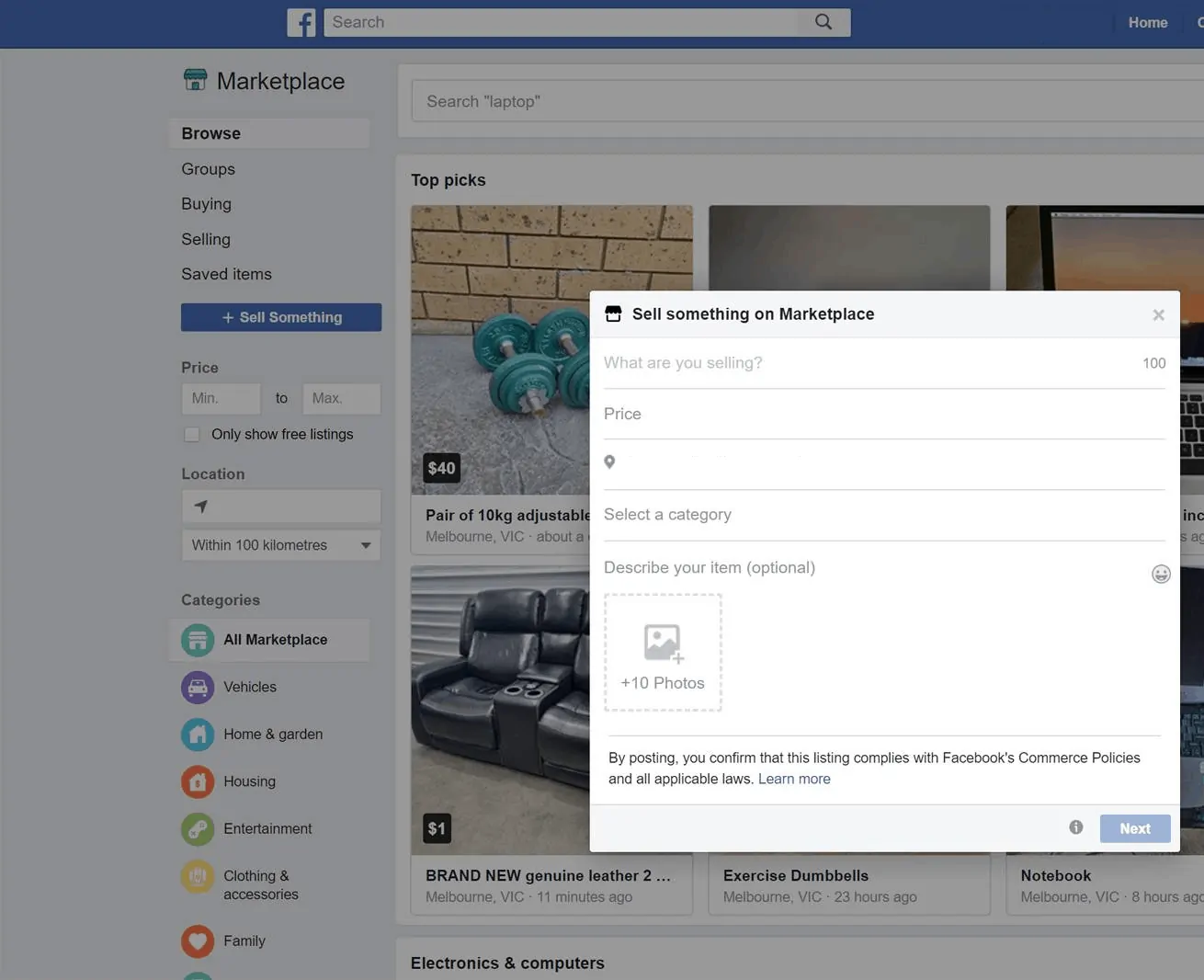 Note: Take time to go through Facebook’s Selling on Marketplace covering everything you need to know about it.